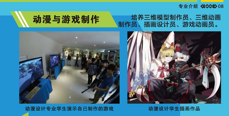 主要为影视制作公司、电视台、动画制作公司、游戏制作公司、玩具设计生产企业等单位培养动漫设计师。
