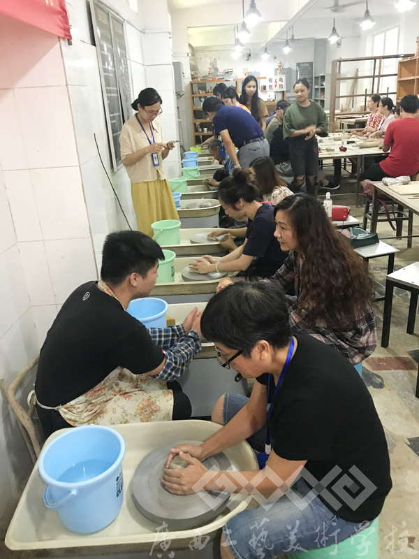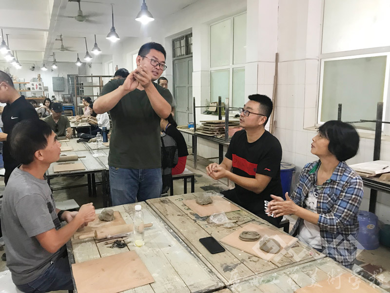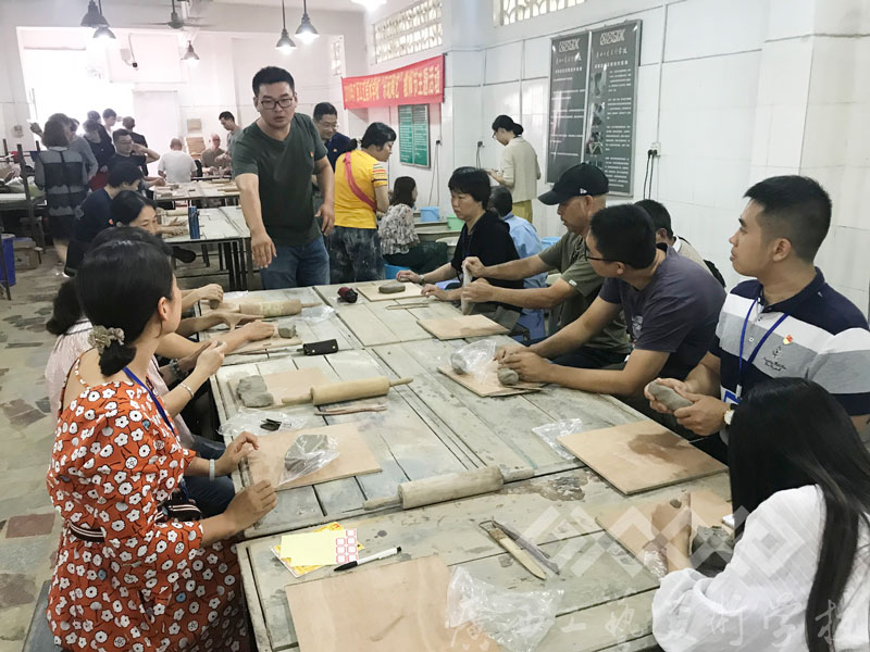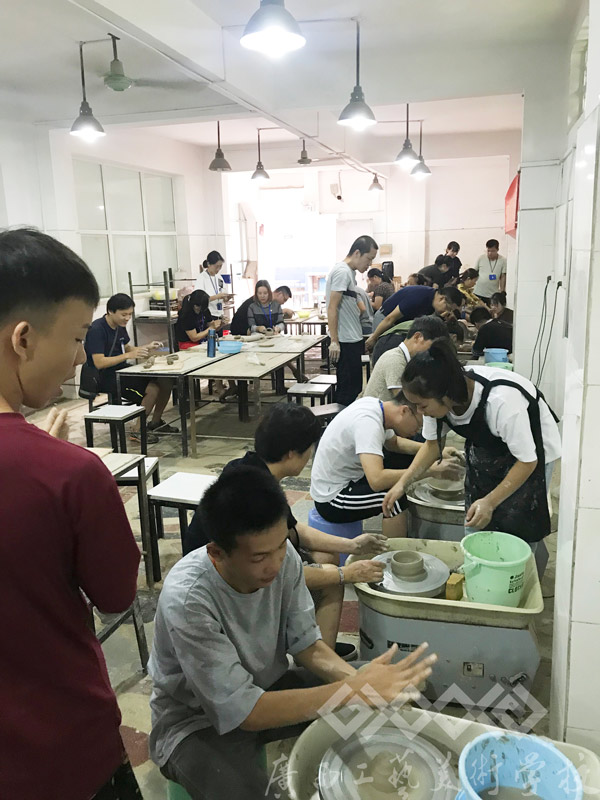 教务科在现场配备了专业的设备、材料和技术指导教师,并安排16级工艺班学生在旁协助。在活动过程中,每位参与陶艺制作的教师都得到了悉心的指导和帮助。大家得以从繁重忙碌的教学工作和行政工作中抽身出来,与陶泥作伴,倾听拉胚机的声音,发挥想象,施展身手,捏制出一个个趣味十足的陶泥作品,充分体验到了陶艺制作的快乐。活动结束后,学校也将为每位教职员工烧制一件作品留作纪念。