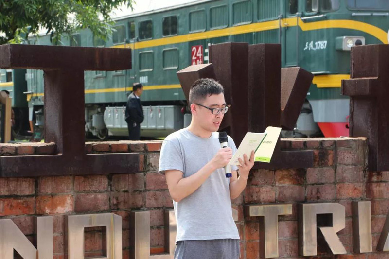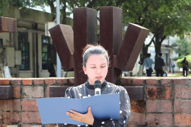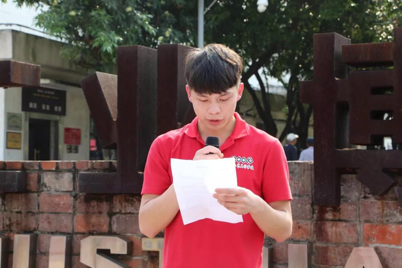 广西工艺美术学校团委书记张天瑞给团员们宣读团章