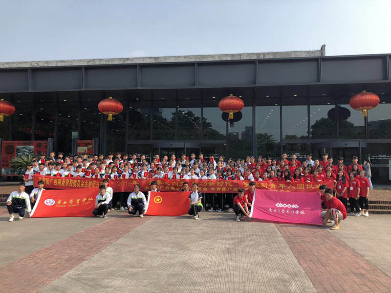 5月10日下午,广西工艺美术学校、广西商业学校组织130名团员青年到柳州工业博物馆举行新团员入团仪式。当日下午3时许,新团员入团仪式正式拉开序幕,全体人员面向国旗高声合唱国歌《义勇军进行曲》。在入团仪式上,老团员代表向新团员颁发团章、团员证和团徽,带领新团员宣誓,并给新团员宣读《团章》中有关团员的义务和权力的相关条款,两校新老团员代表也分别发言。最后,入团仪式在全体成员合唱共青团团歌《光荣啊,中国共青团》中降下帷幕。