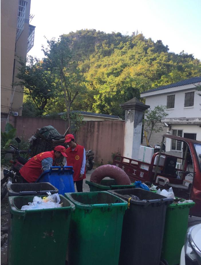 志愿者不怕累不怕脏亲自用手清理垃圾桶