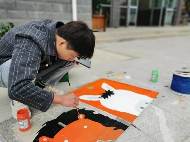 此次活动由我校工艺美术师周英浩老师带领18级工艺班的同学们在利用井盖轮廓的基础上,用色彩纷呈、创意十足的涂鸦作品覆盖住了冰冷、暗沉的井盖,不仅为校园增添了一道靓丽的风景线,还增强了学生们的动手能力和团队协作能力,启发更多的师生加入到美化校园的建设中来。