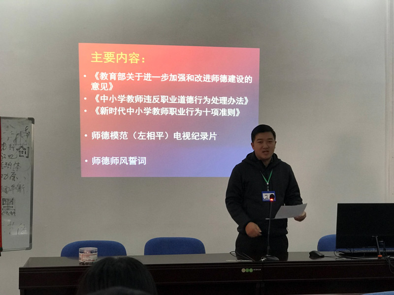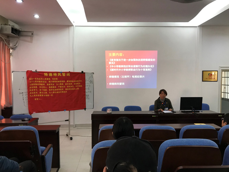 师德师风建设是学校管理的一个核心与永恒的话题,良好的师德师风是一个学校的旗帜,也是稳定教师队伍、提升教师整体素质、促进教育事业全面提升的基础条件。教师在传承文化、开启心智、筑梦未来中已经扮演着越来越重要的角色,发挥着越来越重要的作用。11月26日,我校全体教师集中会议室进行师德师风建设专题学习,此次培训由教务科副科长裴薇主持。会上,纪委书记、副校长李姮作动员讲话。