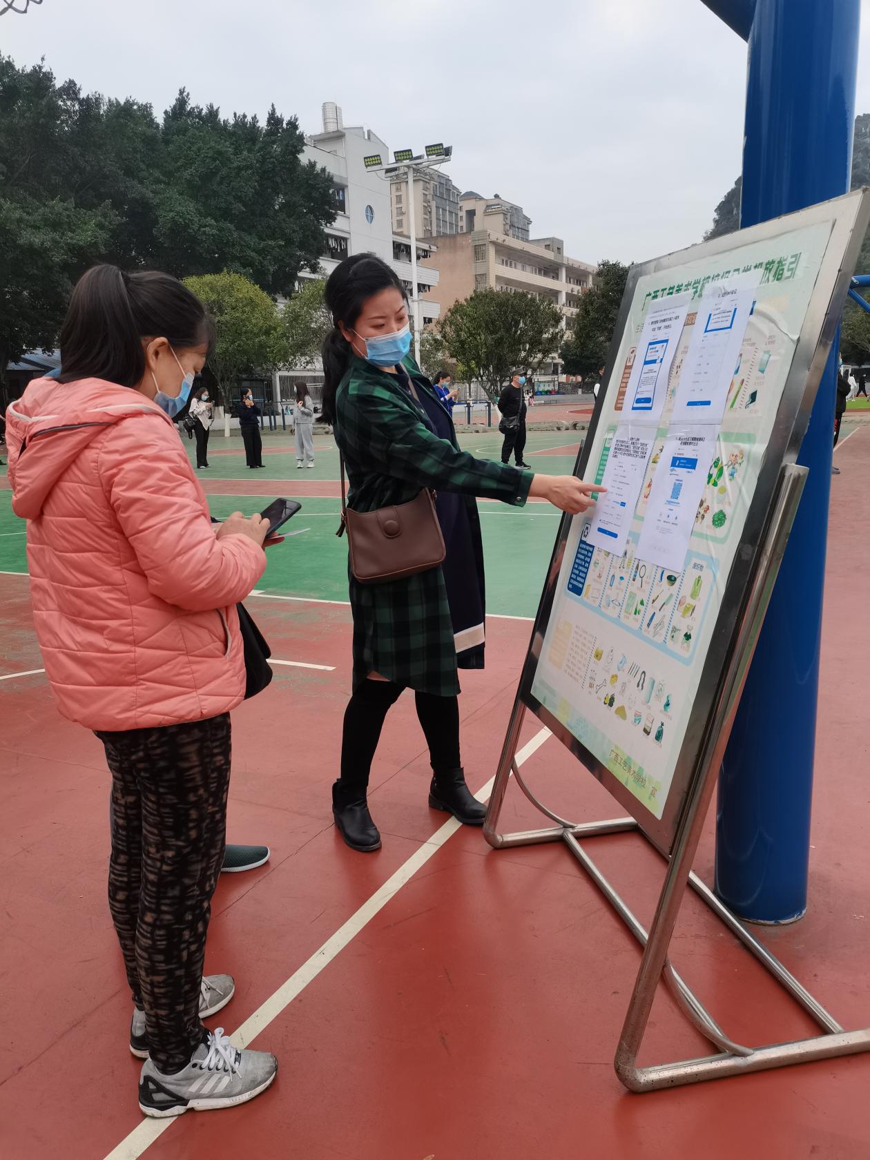 学校工作人员指导“桂核酸”居民端注册信息
