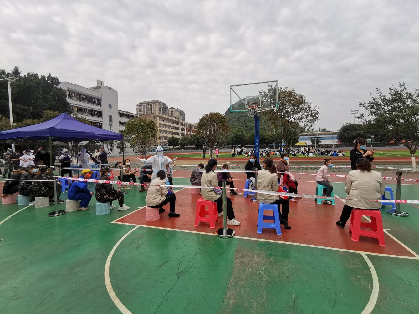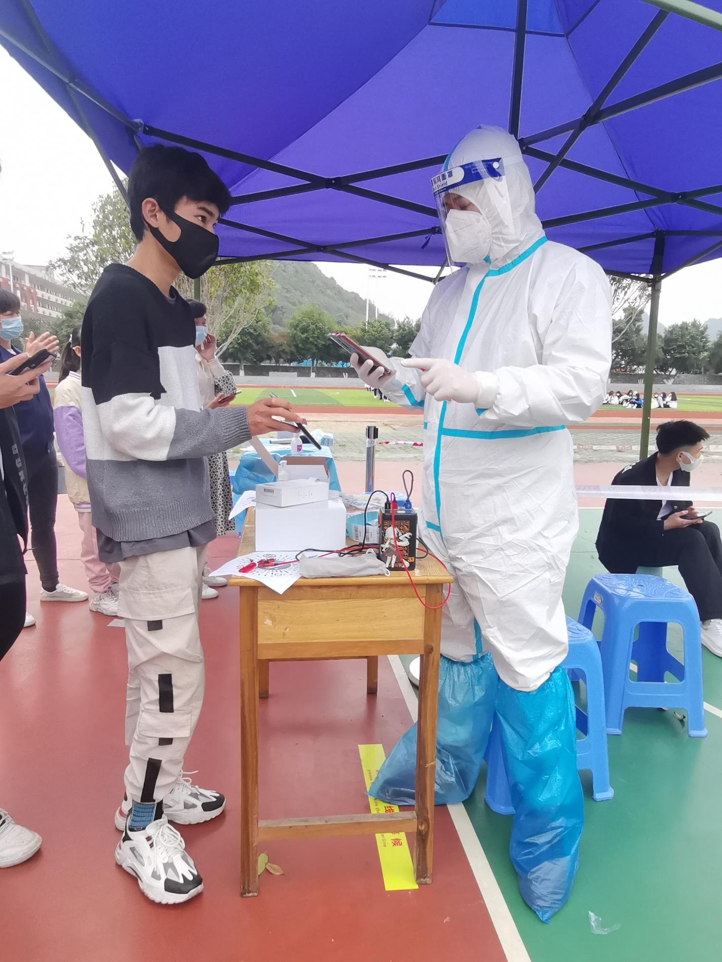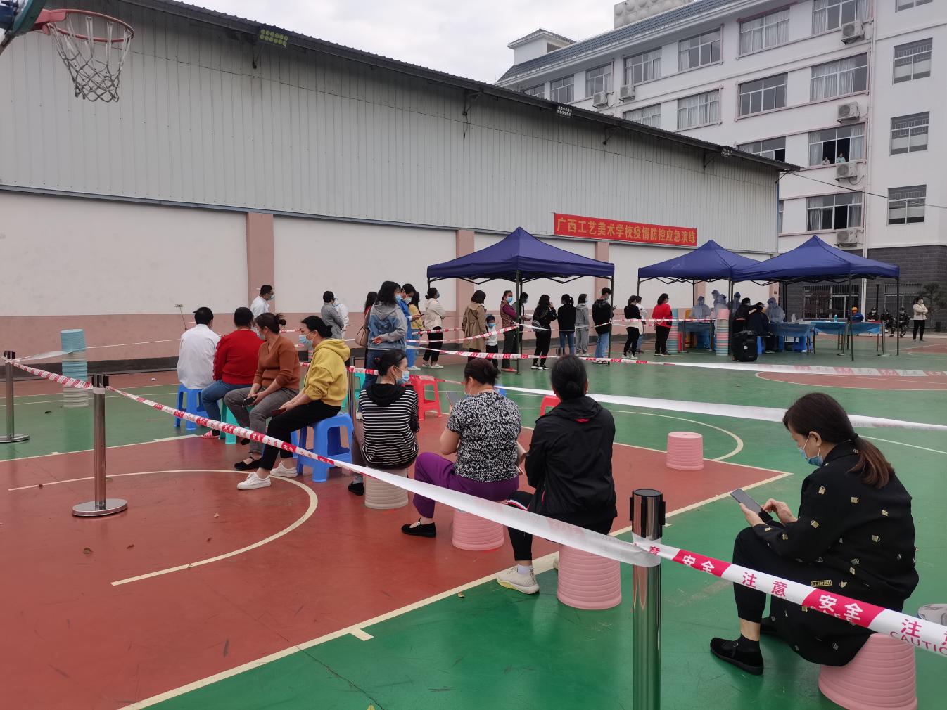为保障广大师生的生命健康安全,根据柳州市疫情防控指挥部部署,3月12日,我校在学校操场开展全体师生员工核酸检测工作。
