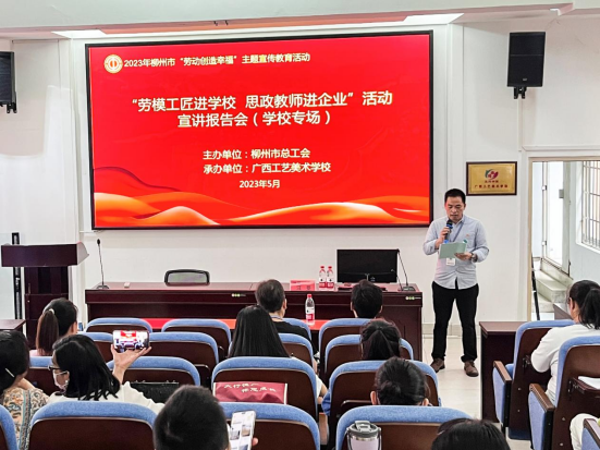 ? ? ? 通过汪旻教授的宣讲,在广西工艺美术学校营造了良好社会风尚,切实让榜样力量引领广大教师勤于学习、善于实践,干一行、爱一行、钻一行、专一行,争做新时代的奋斗者。