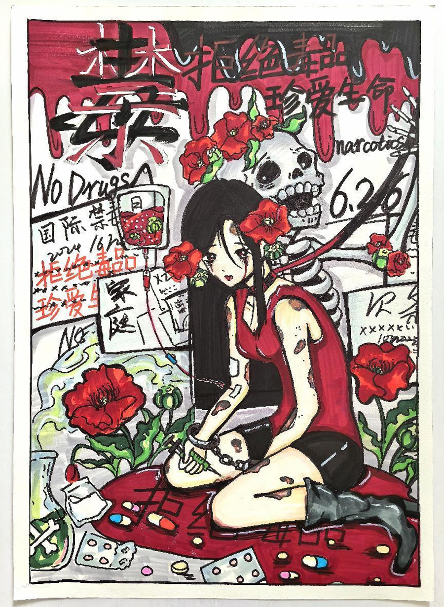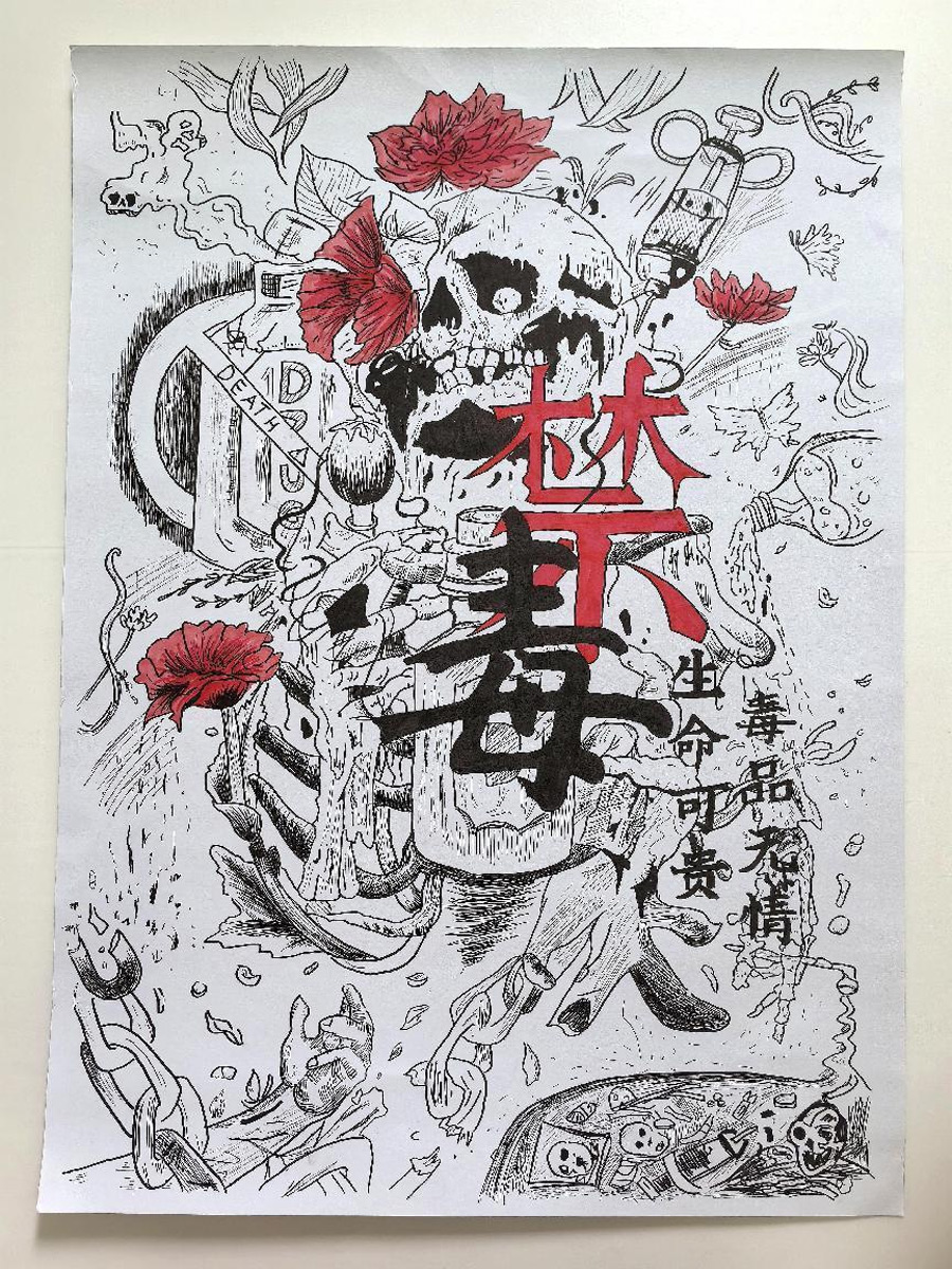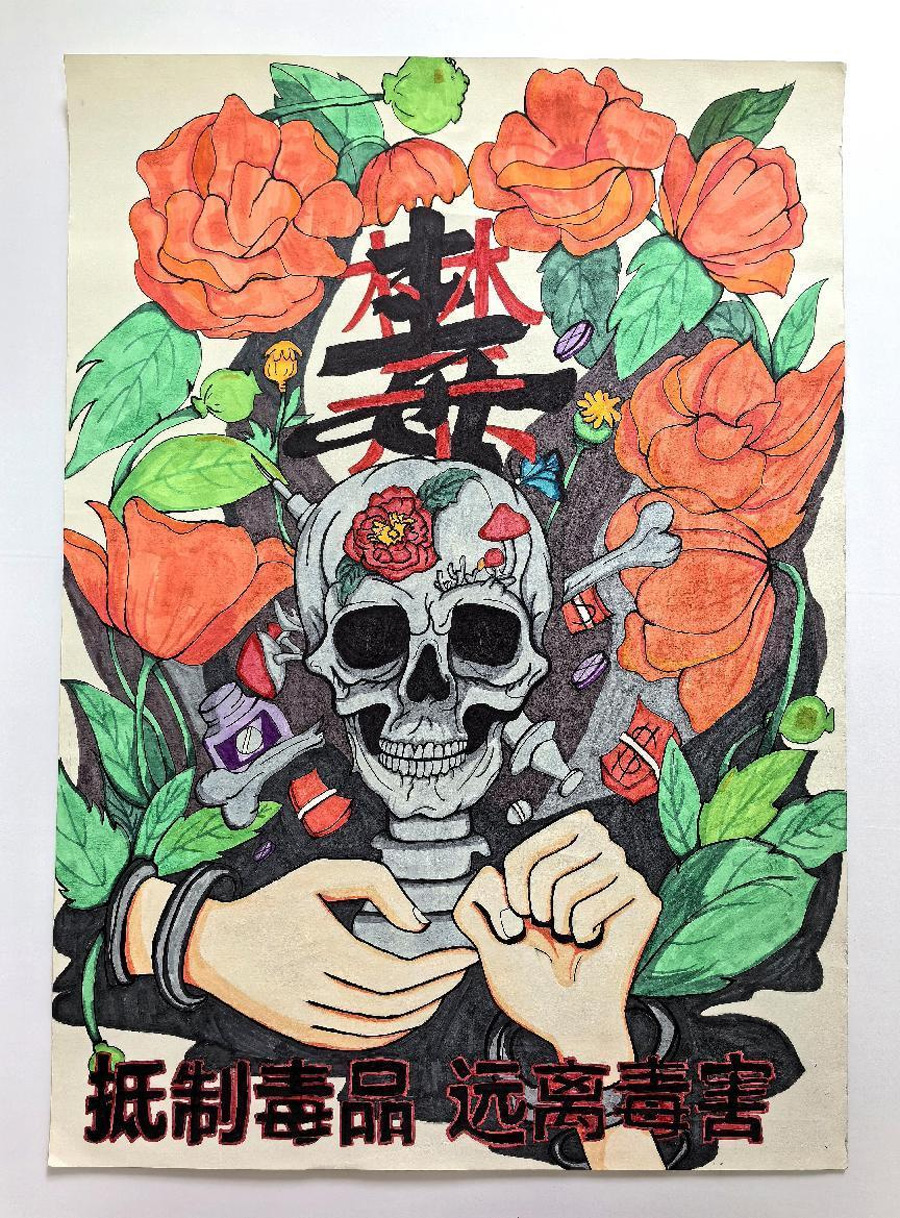 ? ? ? ?每一幅绘画作品,细枝末节处都刻画出作者们对毒品的深恶痛绝,他们执笔为矛,揭示了毒品的丑恶面容,这些优秀的作品下展现的是一颗颗对禁毒的决心,对美好生活的期望。?