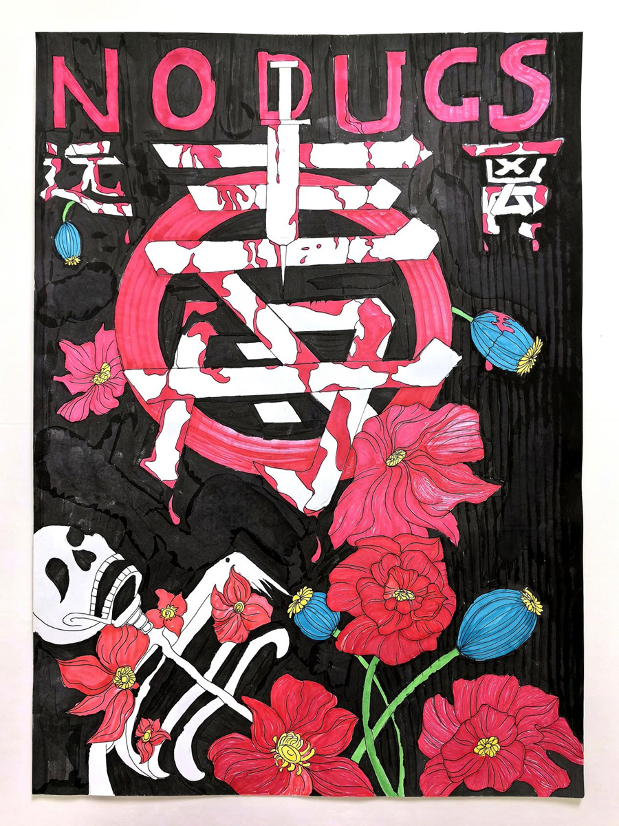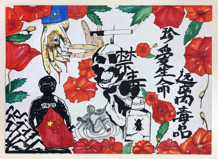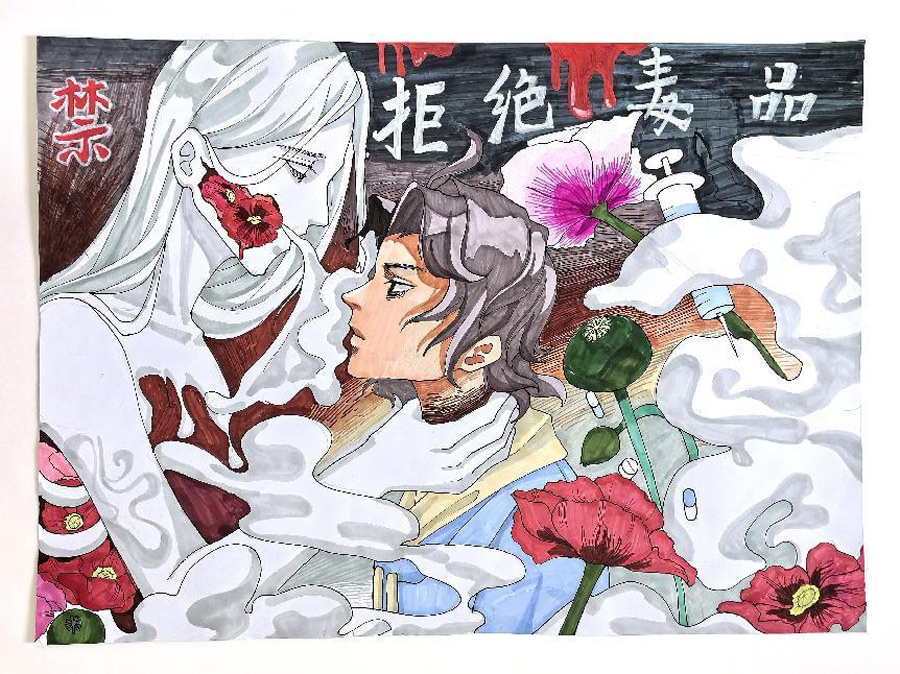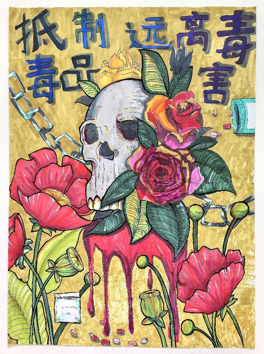 ? ? ? ?每一幅绘画作品,细枝末节处都刻画出作者们对毒品的深恶痛绝,他们执笔为矛,揭示了毒品的丑恶面容,这些优秀的作品下展现的是一颗颗对禁毒的决心,对美好生活的期望。?