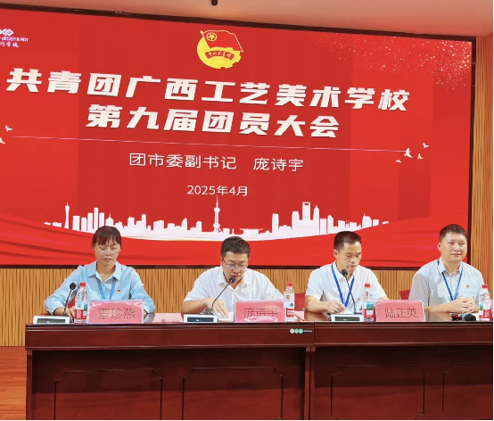 团市委副书记庞诗宇代表团市委预祝大会圆满成功,也对新一届团委提出了殷切期望,希望他们团结带领广大团员青年在各自的岗位上发光发热,为广西工艺美术学校的发展贡献青春力量,在新时代的征程中书写属于青年的辉煌篇章。