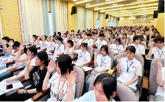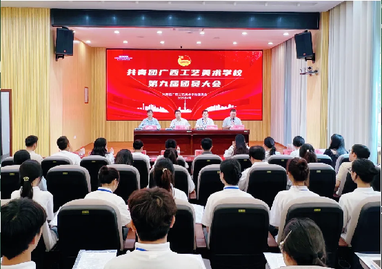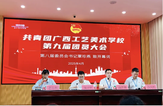 2025年4月22日,共青团广西工艺美术学校第九届团员大会暨换届选举在学术报告厅隆重举行,现场气氛庄重而热烈。团市委领导、学校领导、各兄弟院校团委书记、全校全体团员齐聚一堂,共同见证这一重要时刻。