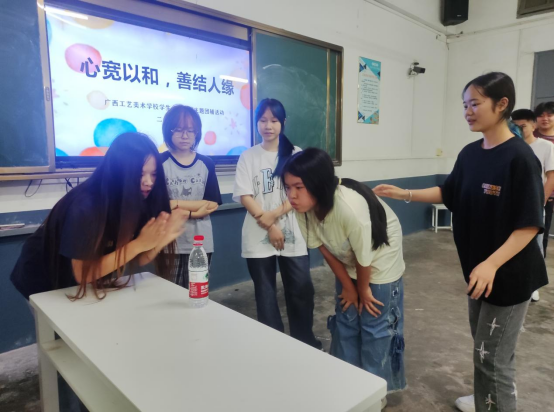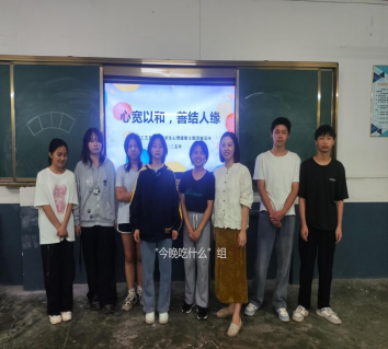 “心宽以和,善结人缘”主题团辅,学生随机分成4组,并给各自小组取名。