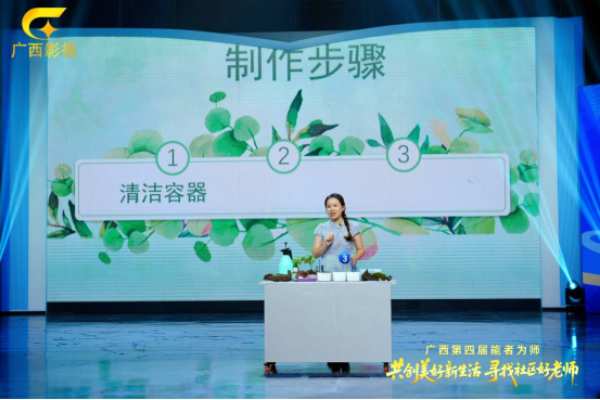 覃早老师的参赛课程为《旧物新生—打造治愈系微景观》,她以精湛的专业技能和扎实的教学功底赢得了现场评委的一致好评。