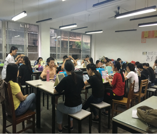 2016年5月13日学校对社会开放化妆实训课,展示我校办学特色?;队愦笫ι蜕缁岣鹘缛耸康窖9勰笔笛悼?。