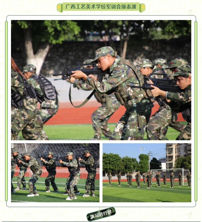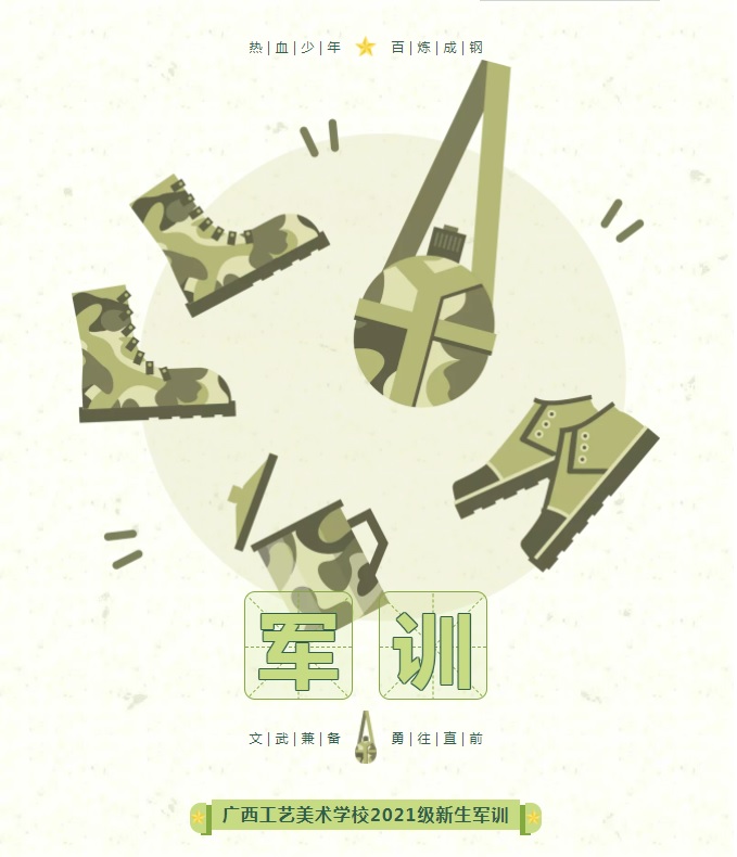 2021年9月23日,广西工艺美术学校2021级军训动员大会在学校运动场举行。广西工艺美术学校党委书记赵小勇、校长助理张新强、军训教官代表以及学校学生军训工作领导小组等出席动员大会。广西工艺美术学校办公室主任陆正英主持会议。