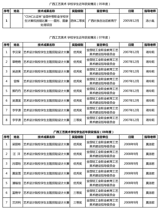 广西工艺美术学校学生2005~2008年度获奖情况