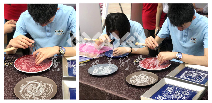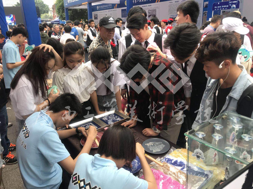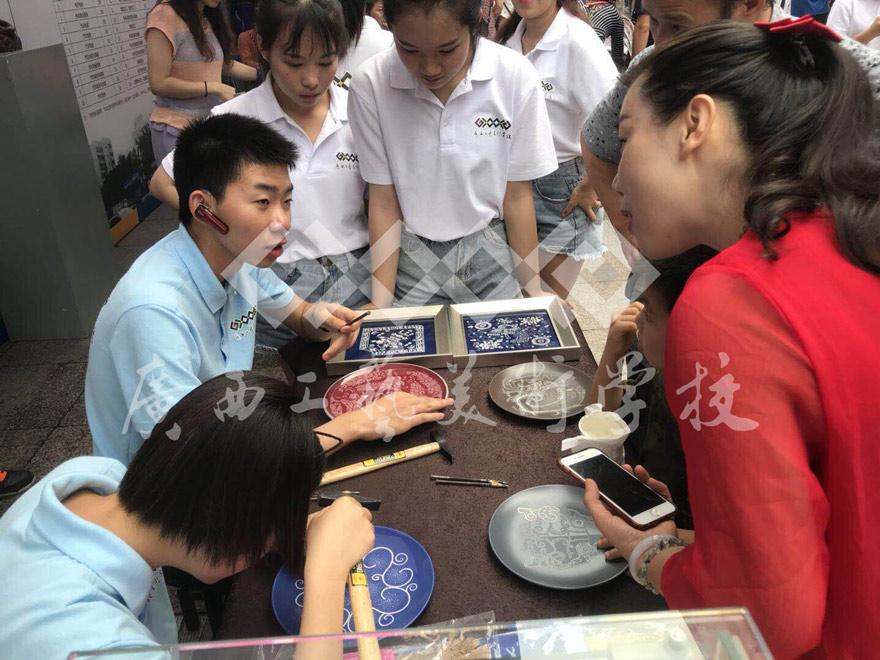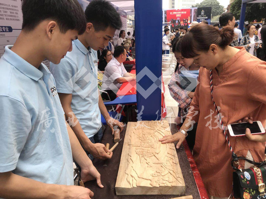 我校学生展示的木雕,刻瓷,纤维艺术、动漫等作品吸引了各界人士及众多市民前往观看了解,不时有市民对学生的精湛技艺点头称赞。