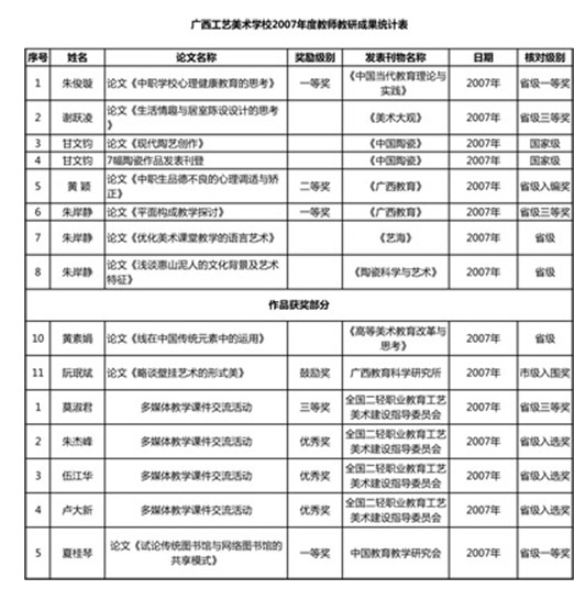 广西工艺美术学校2007年度教师教研成果统计表